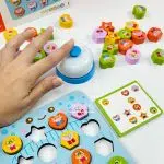 - از کودک بخواید تا با استفاده از قطعات چوبی، الگوی روی کارت رو روی صفحه بازی بچینه. 🧩